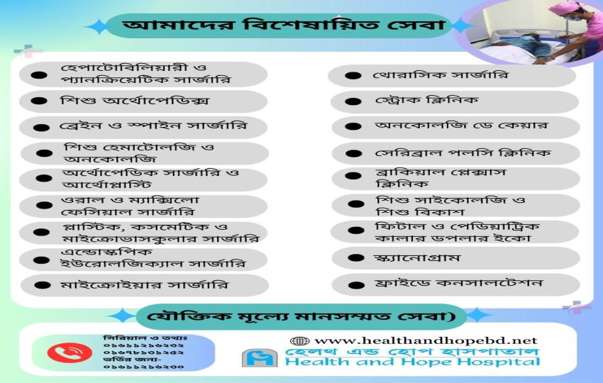 বিশেষায়িত চিকিৎসা, মানবিক সেবা ও আধুনিক প্রযুক্তির সমন্বয় আপনার ও আপনার প্রিয়জনের সুস্থতার জন্য হেলথ