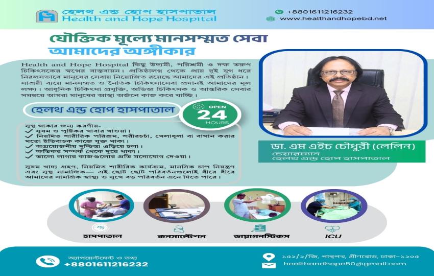 Health and Hope Hospital কিছু উদ্যমী, পরিশ্রমী ও দক্ষ তরুণ চিকিৎসকের স্বপ্নের বাস্তবায়ন। প্রতিষ্ঠালগ